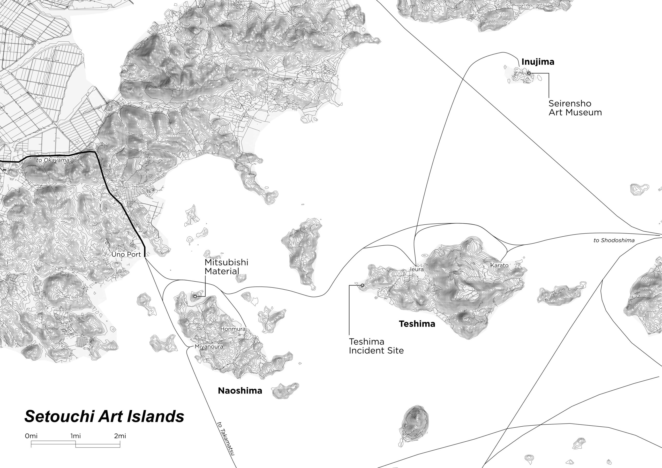 Map of the Setouchi focused on the islands of Naoshima, Teshima, and Inujima. Image credit: Catalina Cabral-Framiñan