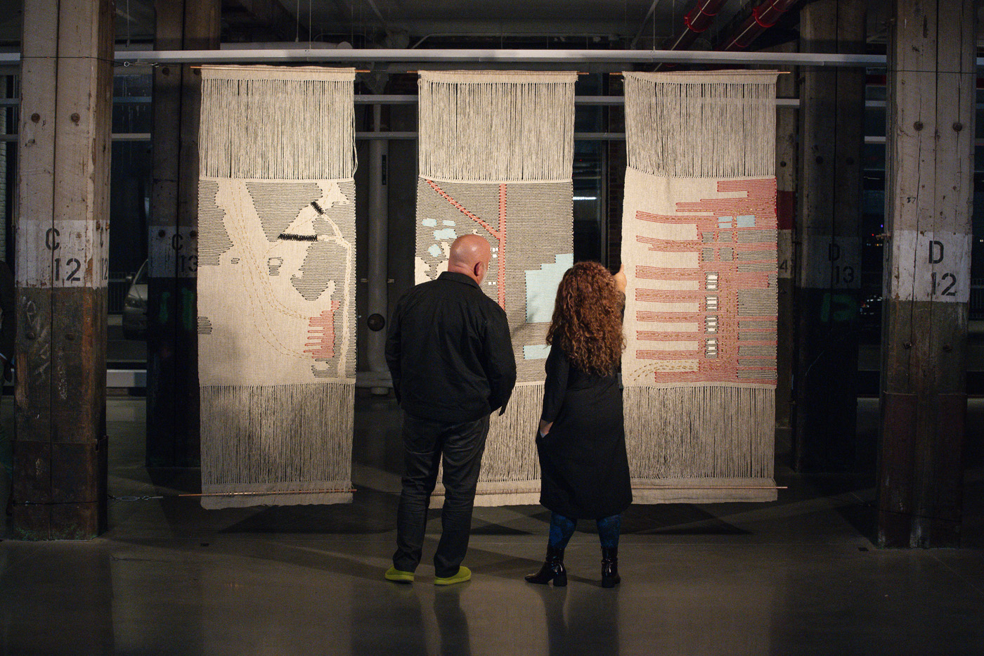 “The patterns embedded in the woven and knitted textiles presented here are part of the fabric of this neighborhood and Bush Terminal. Some patterns are historical, while others are current. Do you recognize any or remember them? As with all aspects of life, these patterns are in a constant process of transformation, creating new ways of living.” —Felecia Davis