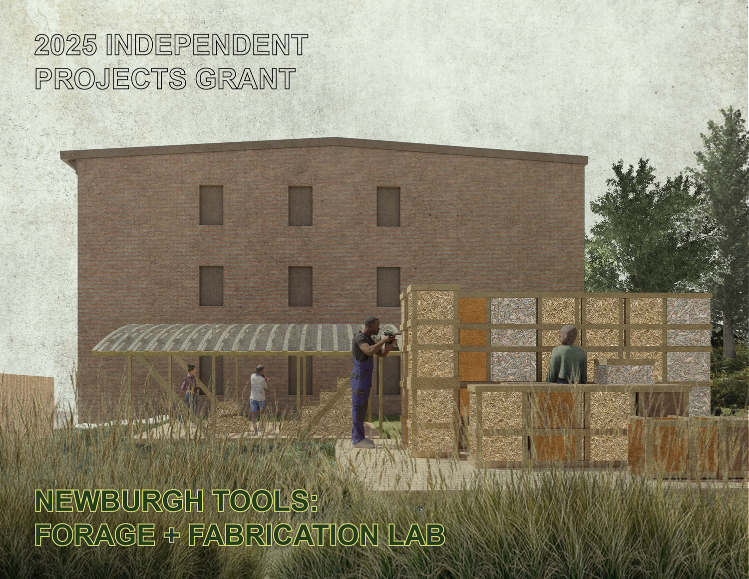 Newburgh Tools: Forage & Fabrication Lab identifies and activates high-impact, low-cost sustainable material strategies in the context of urban placemaking through the design and construction of a community tool library. During this phase of work, the project team will remediate soil, sow and harvest materials on the project’s neglected site, forage waste and surplus substances from the surrounding environment, and implement community workshops to prototype these resources for use in the walls of the building and beyond.