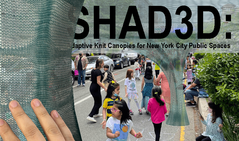 Shad3d is a research and design project that applies 3D knitting at an architectural scale to create a rapidly expandable, occupiable shade structure that can be easily deployed during public outdoor events. The structure is being developed with two community partners at pilot sites in New York City, with the potential to be adapted to various locations. It aims to provide cooling on hot summer days, making outdoor activities in public spaces more enjoyable.