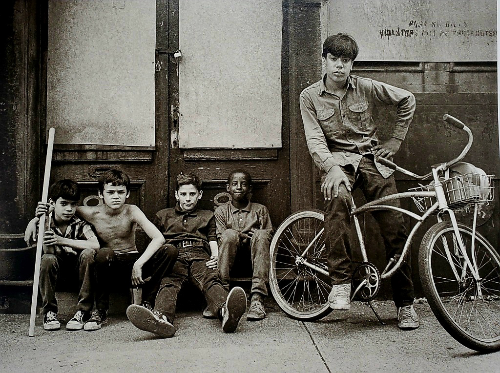 "Beekman Street, Sunday Morning. Ginco, Tonto, Frankie, John Jr. and Nelson, after exploring the buildings." Image credit: Danny Lyon