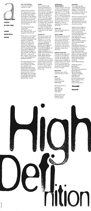 The theme was developed by the 1994 Young Architects + Designers Committee, which comprised past League Prize winners Alicia Imperiale, Peter Pelsinski, and Claire Weisz.