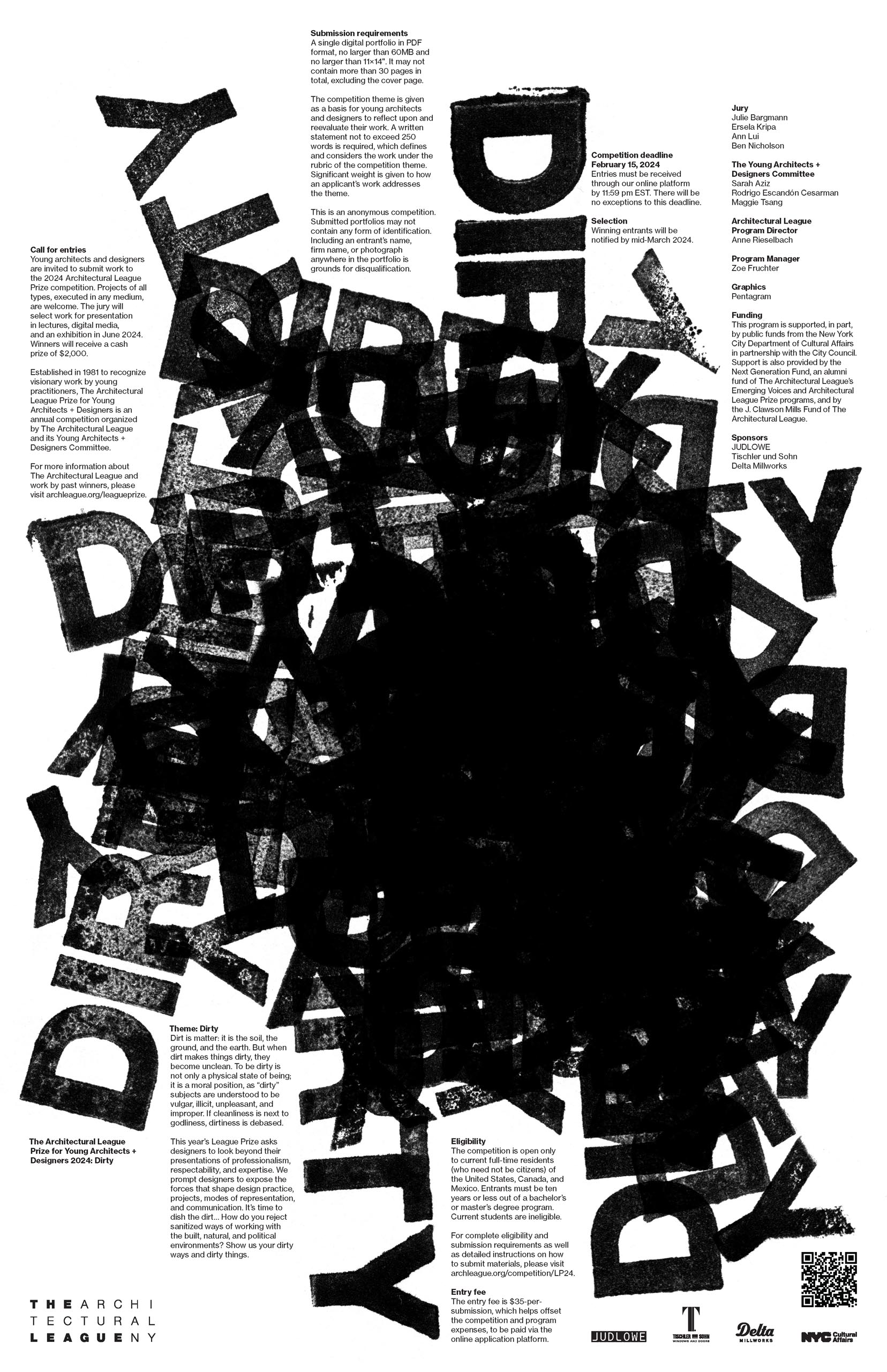 This year’s League Prize asks designers to look beyond their presentations of professionalism, respectability, and expertise. We prompt designers to expose the forces that shape design practice, projects, modes of representation, and communication. It’s time to dish the dirt… How do you reject sanitized ways of working with built, natural, and political environments? Show us your dirty ways and dirty things.