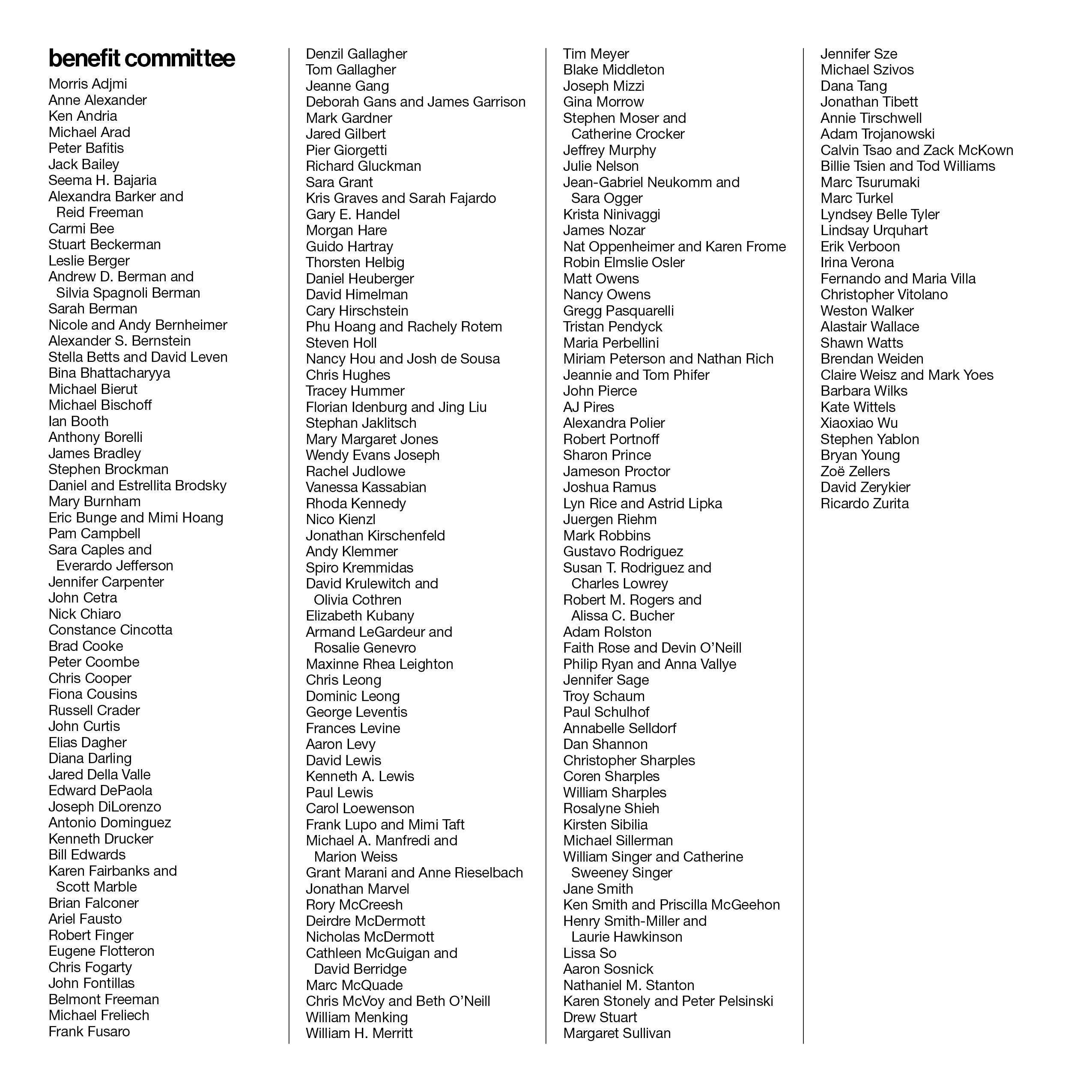 The Architectural League gratefully thanks its supporters. Scroll down to view a full list of this year’s Benefit Committee.