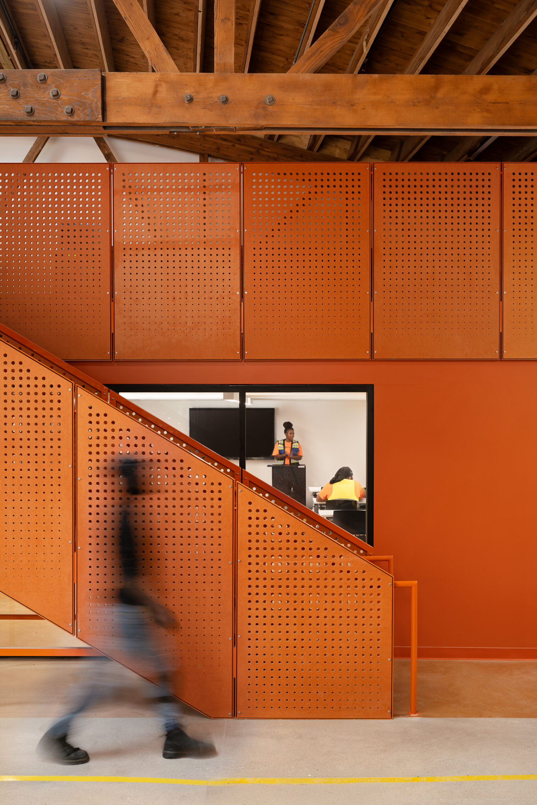Revolution Workshop, a renovation of two existing warehouses to create the headquarters for a workforce development organization with flexible shop spaces, offices, and classrooms, achieving over 95% Minority and Women-owned subcontractors in alignment with the client’s mission